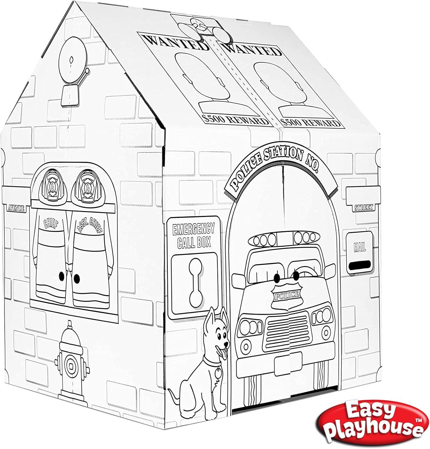 Easy Playhouse Police and Fire Station - Kids Art & Craft for Indoor & Outdoor Fun – Decorate & Personalize The Cardboard Fort, 32" X 26. 5" X 40. 5" - Made in USA, Age 3+ [Amazon Exclusive], white