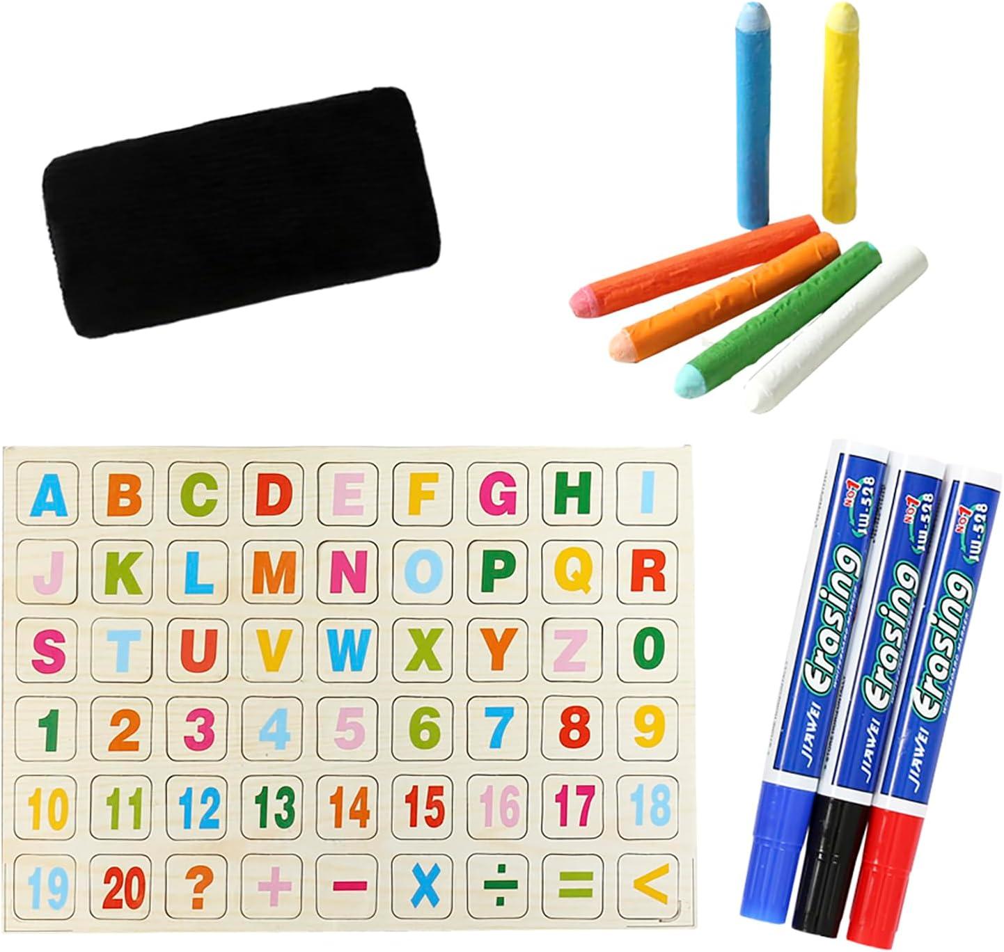 Comprehensive Art & Craft Kit: Includes 6 dustless chalks, 3 whiteboard pens, magnetic letters and numbers, and an eraser. Fosters educational development and screen-free fun, making the Easy Playhouse Wooden Table Top Easel ideal for any playroom or classroom.