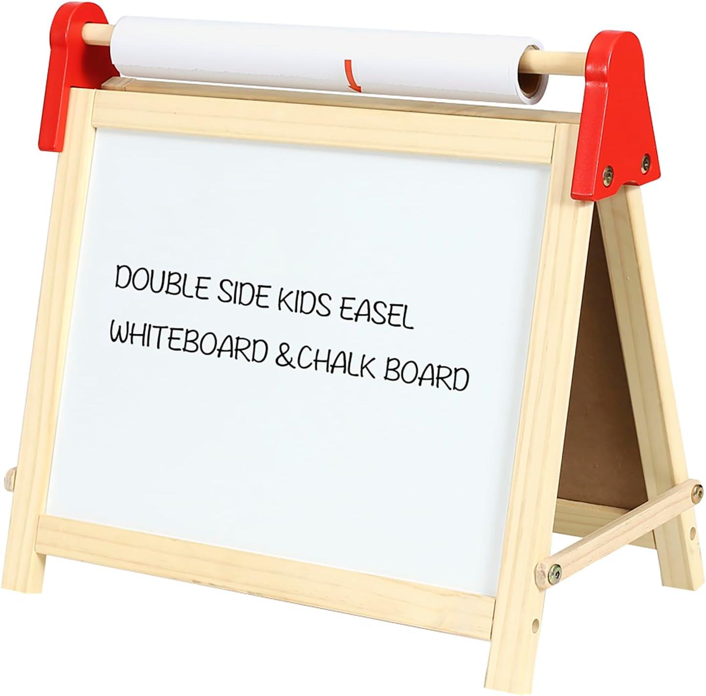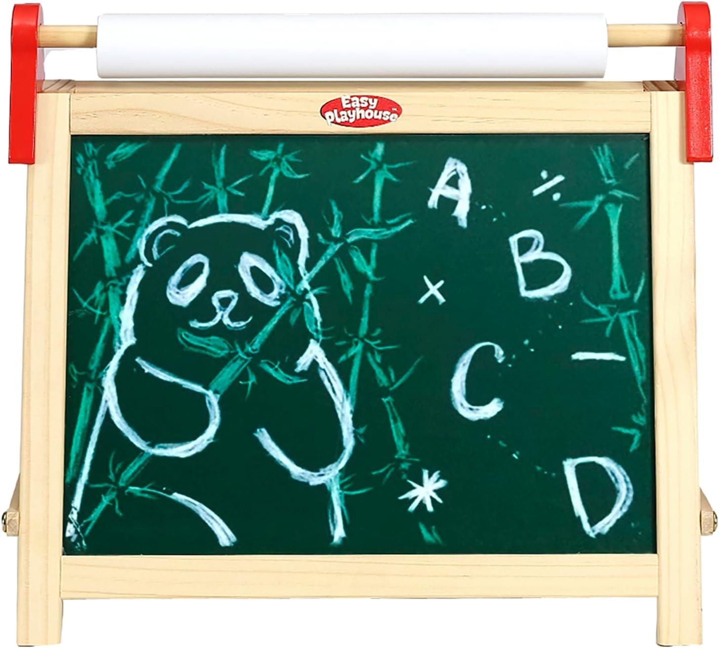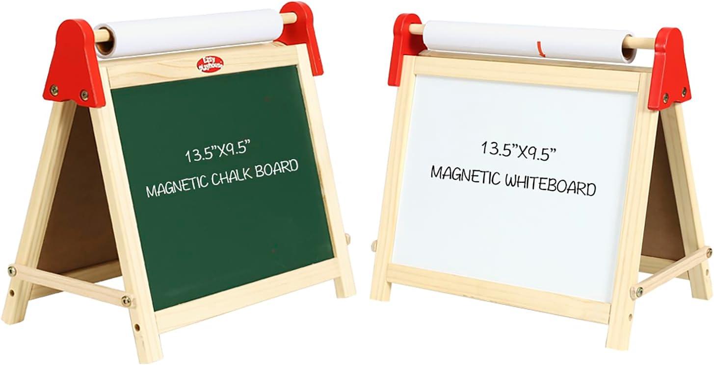 Easy Playhouse Wooden Table Top Easel for Children. Double Sided, White Board and Chalk Board. Chalk, Eraser, Markers, Alphabet, Stickers and Paper Roll. Age 3+(Tabletop w/ Paper Roll)